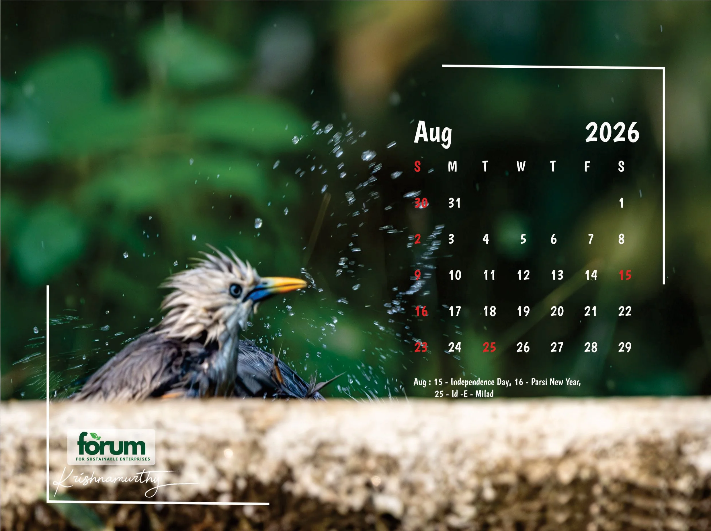 A Malabar Starling bursts into motion while bathing during a monsoon shower at Thattekad Bird Sanctuary. Feathers fluffed and beak open, the bird shakes off water as droplets hang suspended in the air, capturing the raw energy and joy of rain in the Western Ghats rainforest